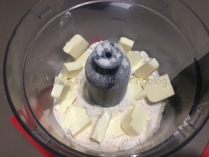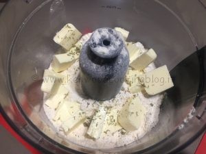 - Nel Food Processor con lama universale inserire la farina 00 (200 gr) e il burro (100 gr) freddo di frigo a tocchetti