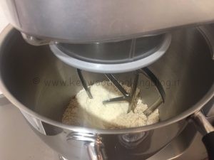 - Azionare il Kenwood a velocità 1 per 1 minuto fino ad ottenere un composto sabbioso e farinoso