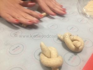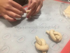 - Ricavare da ogni porzione un filoncino lungo e stretto circa 18 cm tipo un grissino
